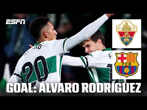 Álvaro Rodríguez brings Elche level after beating Barcelona’s offside trap.